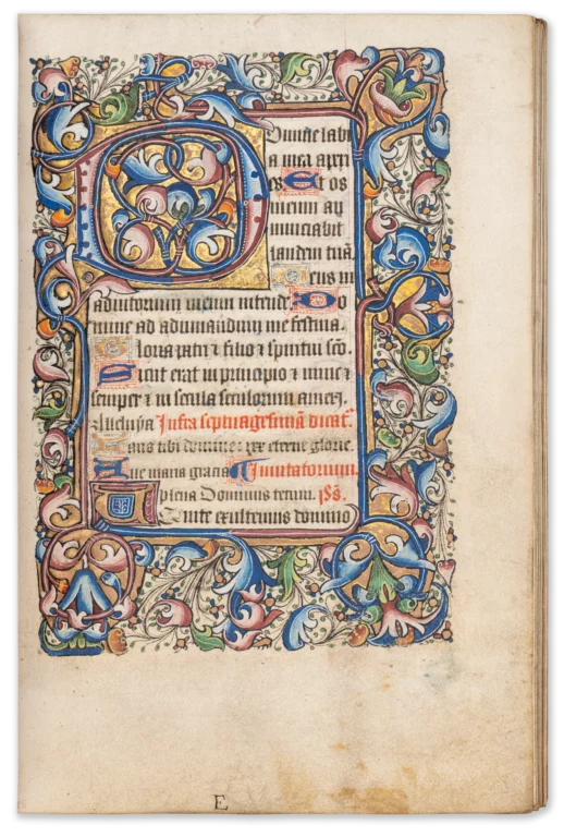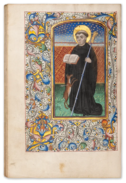 Manuscripts from England in private ownership are exceptionally rare. The four outstanding miniatures were painted by an artist who drew inspiration from Flemish illumination.