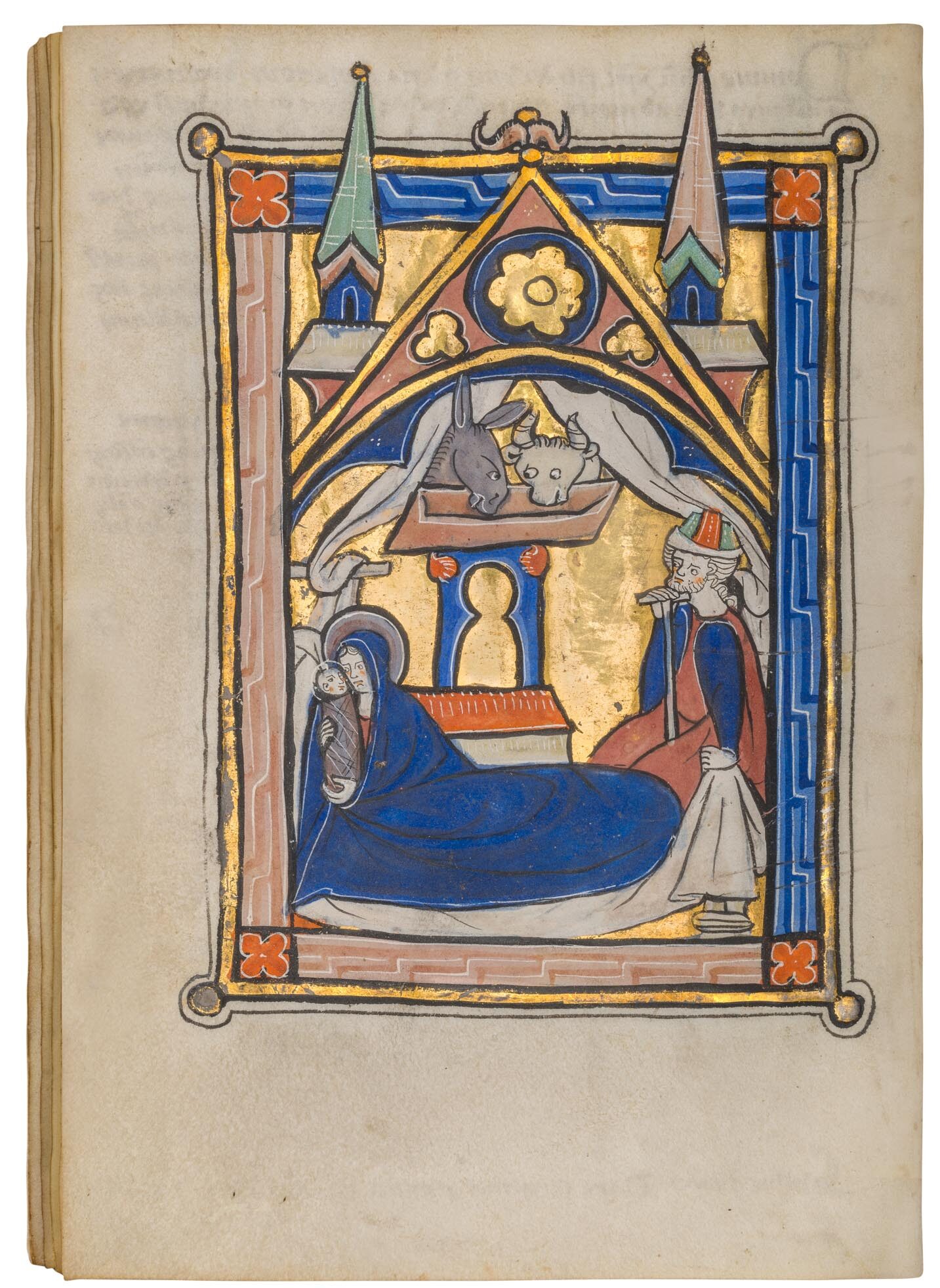 Fig. 7 Franciscan Psalter, use of Ghent. Manuscript in Latin on vellum, possibly illuminated in the workshop of the Franciscan Master of Bruges. Flanders, Bruges, c. 1255-1260, f. 10v, Nativity.