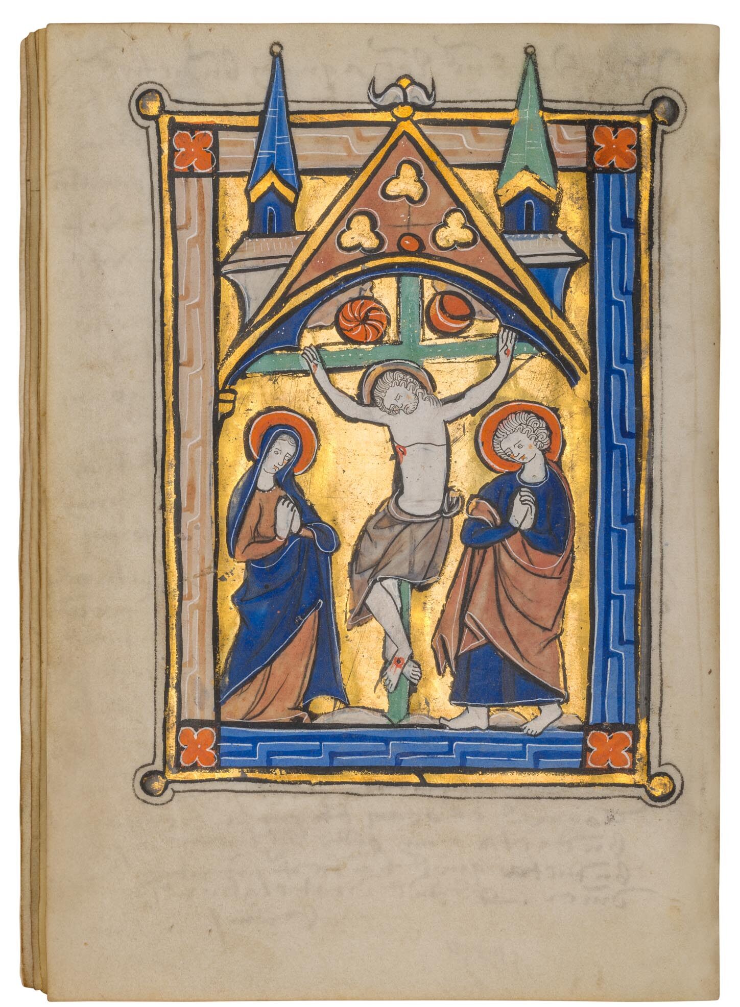 Fig. 6 Psalter. Manuscript in Latin on vellum, illuminated by the Circle of the Franciscan Master Southern Netherlands, Bruges/Ghent, c. 1255–1265, f. 12v, Crucifixion.