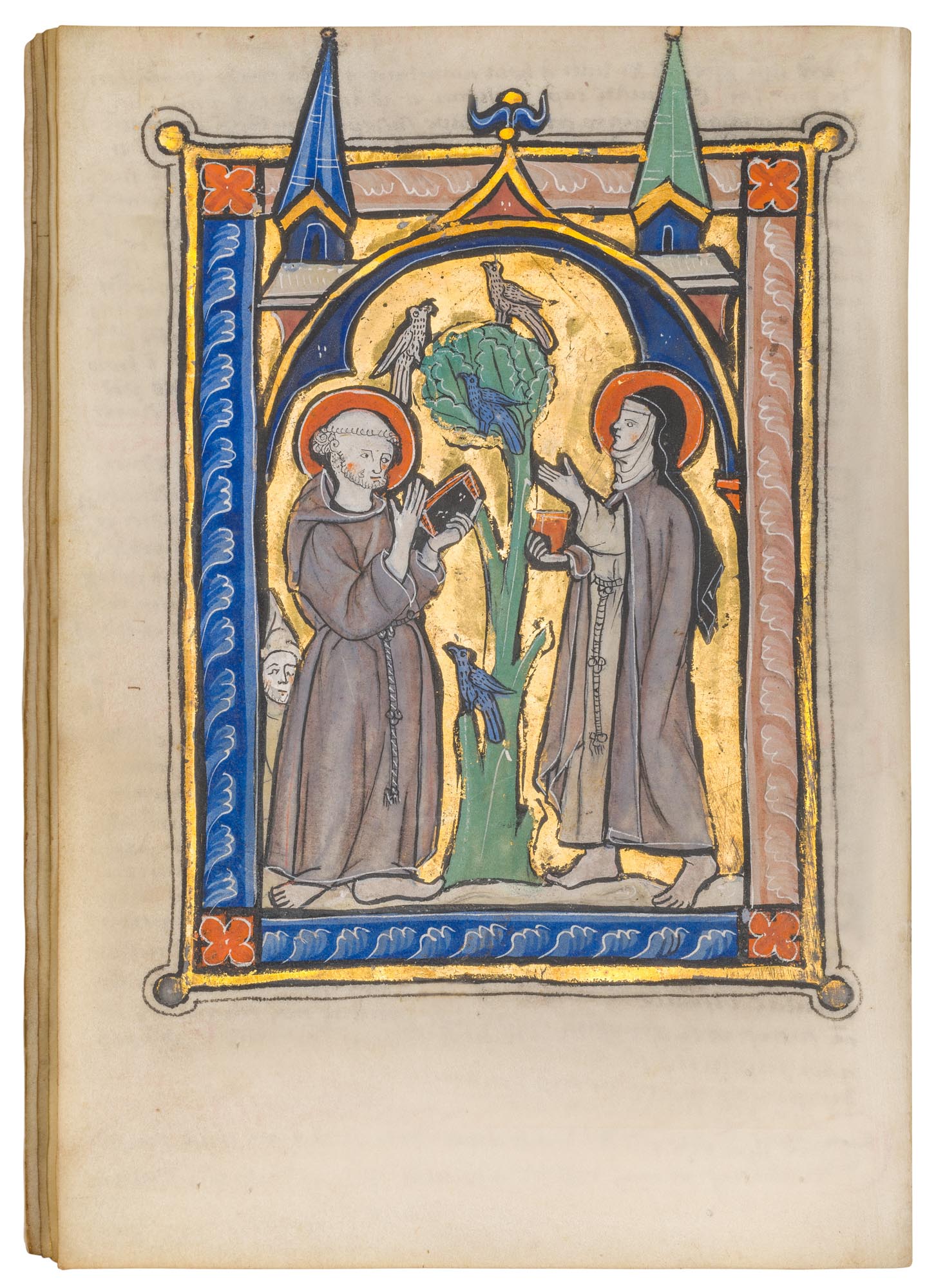Fig. 13 Franciscan Psalter, use of Ghent. Manuscript in Latin on vellum, possibly illuminated in the workshop of the Franciscan Master of Bruges. Flanders, Bruges, c. 1255-1260, f. 8v, Saint Francis and Saint Clare