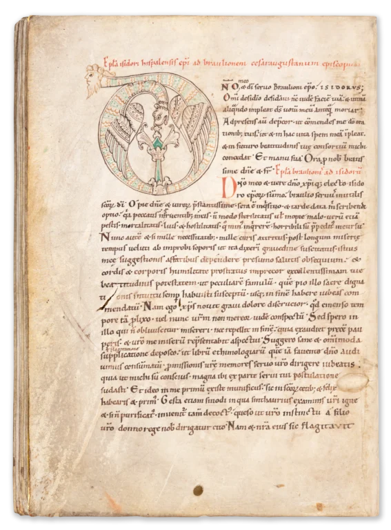 The Etymologies of Isidore of Seville is by far the most important encyclopedic treatise of the Middle Ages (as attested to by the great number of surviving intact or fragmented manuscripts), and this tenth-century book is probably the oldest witness to this text available on the market.