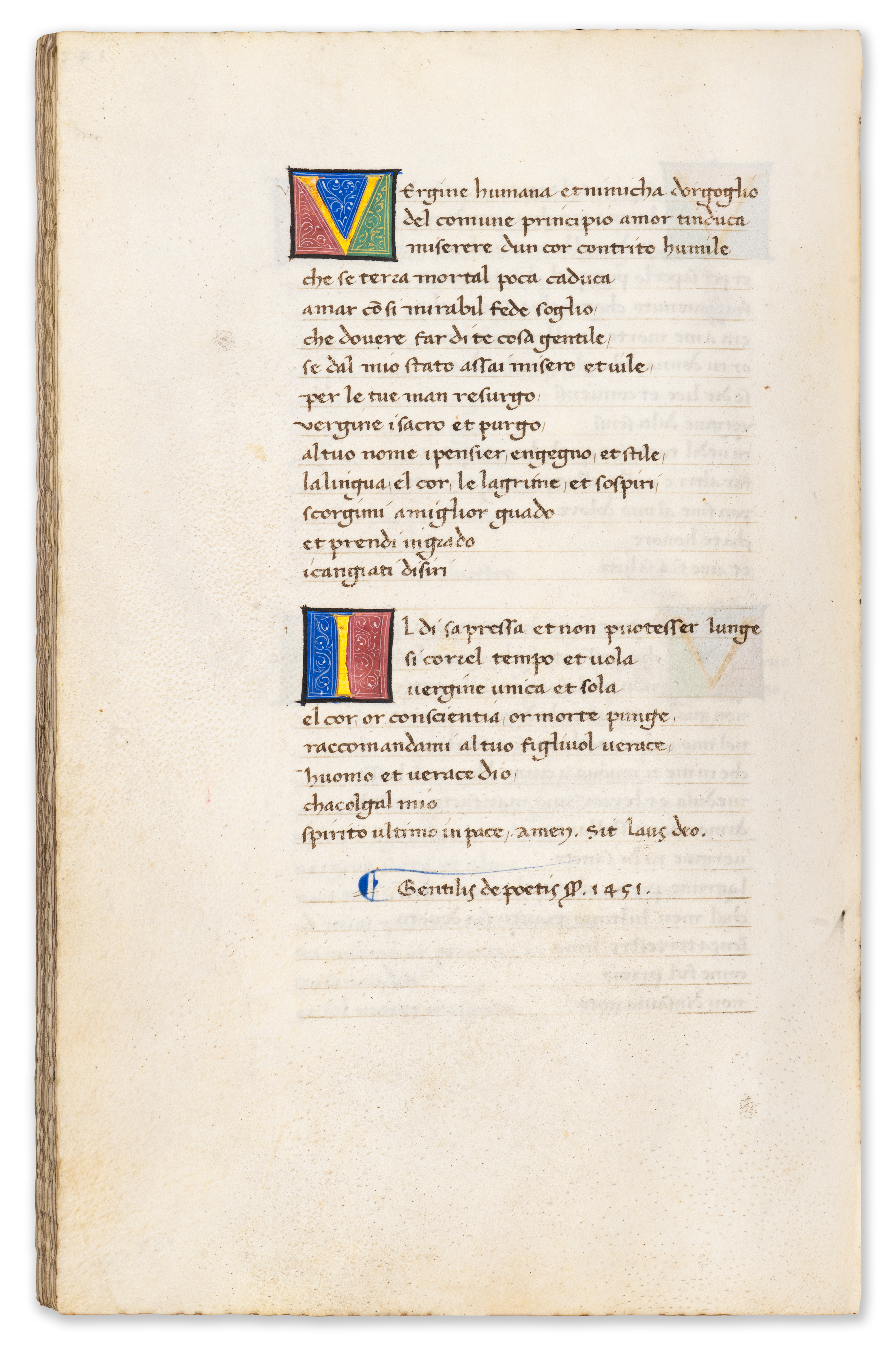 The manuscript at hand is a long-lost copy of Petrarch’s Rerum vulgarium fragmenta, transcribed in 1451 by the Bolognese notary and scribe Gentilis de Poetis.