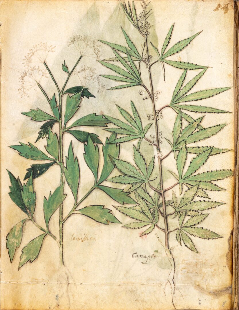 The second Italian manuscript, produced slightly later, between 1500 and 1520, could hardly be more different. Written on parchment and filled with nearly 400 plant images, it reflects a renewed fascination with direct observation. Many of the plants are rendered with striking realism: leaves veined with care, roots branching naturally, fruits casting subtle shadows.